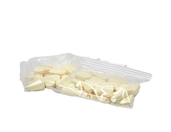 Cœurs de dextrose jaunes de My First Sweets dans un petit sachet.
