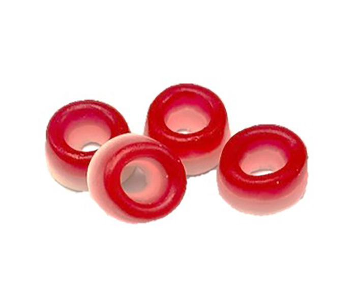 Confiserie. Sirop de glucose, sucre, gélatine bovine, concentré de jus de fruits 1%, acide alimentaire (acide citrique), régulateur d'acidité (citrate trisodique), arômes, concentré de jus de carotte noire, extrait de paprika, extrait de curcuma, extrait de spiruline, colorants (complexes de chlorophylle et de cuivre, complexes de chlorophylle, caramel d'ammoniaque), huile végétale (palme), agent d'enrobage (cire de carnauba et cire d'abeille).