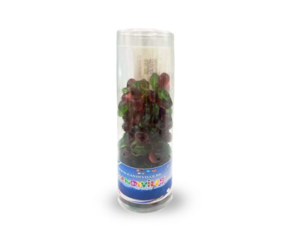 Suikerwerk. Glucosestroop, suiker, rundergelatine, fruitsap concentraat 1%, voediingszuur (citroenzuur), zuurteregelaar (trinatriumciraat), aroma’s, zwarte wortelsap concentraat, paprika extract, kurkuma exctract, spirulina extract, kleurstoffen (complexen van chlorophyl en koper, complexen van chlorophyl, ammonia caramel)